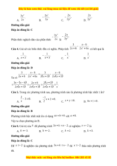 Câu 1. Biểu thức nào sau đây không là phân thức đại số? A. B. C. D. Hướng dẫn giải Đáp án đúng là: B