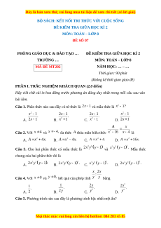 ĐỀ KIỂM TRA GIỮA HỌC KÌ 2 TRƯỜNG … MÔN: TOÁN – LỚP 8 MÃ ĐỀ MT202 NĂM HỌC: … – … Thời gian: 90 phút
