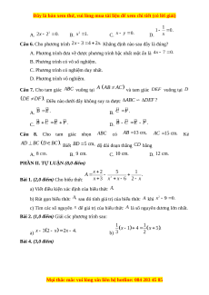 Câu 5. Phương trình nào sau đây là phương trình bậc nhất một ẩn?