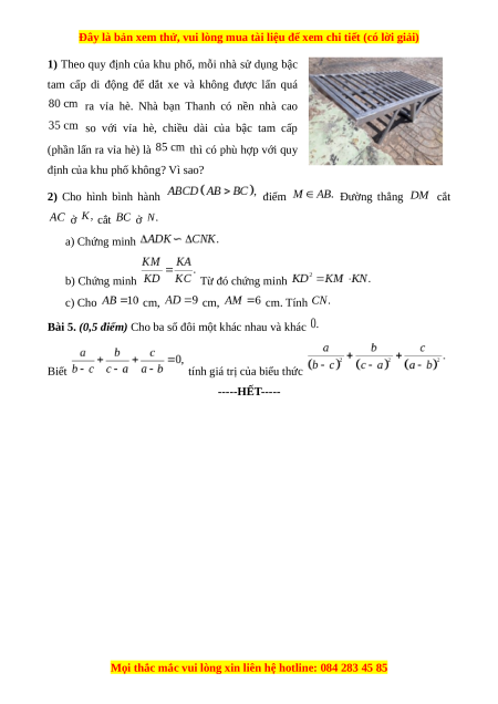 Bài 5. (0,5 điểm) Cho ba số đôi một khác nhau và khác Biết