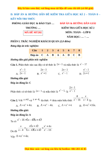 D. ĐÁP ÁN & HƯỚNG DẪN ĐỀ KIỂM TRA GIỮA HỌC KÌ 2 – TOÁN 8 – KẾT NỐI TRI THỨC