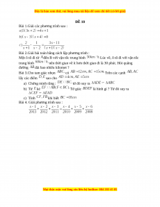 nên thời gian về ít hơn thời gian đi là 30 phút. Hỏi quãng đường dài bao nhiêu kilomet ? Bài 3.Cho tam giác nhọn có Trên các cạnh lấy các điểm sao cho a) Chứng minh rằng : từ đó suy ra b) Từ kẻ Tứ giác