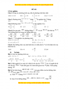 Câu 2. Phương trình nhận là nghiệm khi bằng: Câu 3.Phương trình có tập nghiệm S là : Câu 4.Cho tam giác đường thẳng và cắt lần lượt tại .