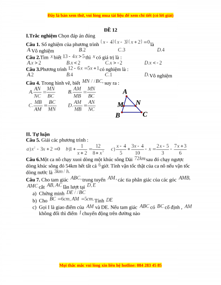 Đây là bản xem thử, vui lòng mua tài liệu để xem chi tiết (có lời giải)