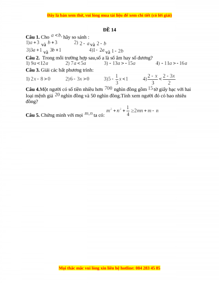 Đây là bản xem thử, vui lòng mua tài liệu để xem chi tiết (có lời giải)
