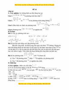 Câu 4. Phương trình vô nghiệm khi B.Tự luận