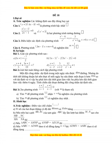 Đây là bản xem thử, vui lòng mua tài liệu để xem chi tiết (có lời giải)