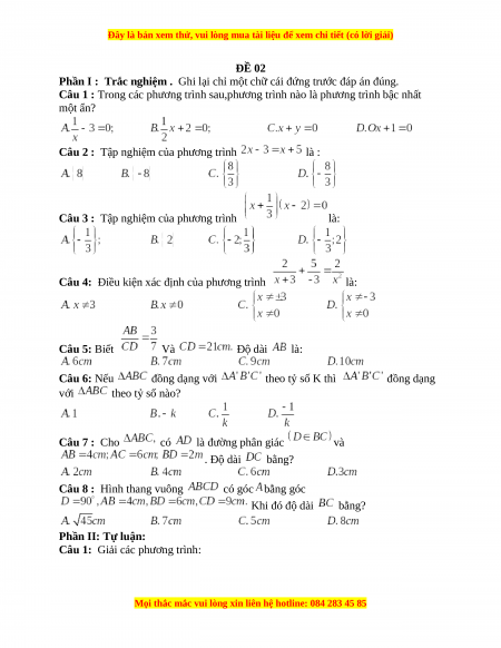 Đây là bản xem thử, vui lòng mua tài liệu để xem chi tiết (có lời giải)