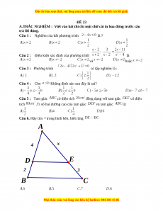 Câu 3 : Phương trình có tập nghiệm là : Câu 4 : Cho