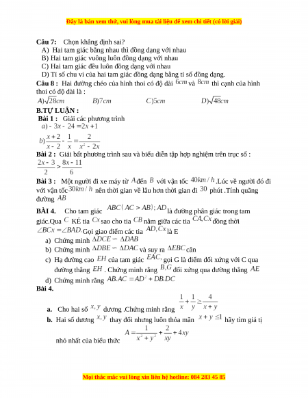 Đây là bản xem thử, vui lòng mua tài liệu để xem chi tiết (có lời giải)