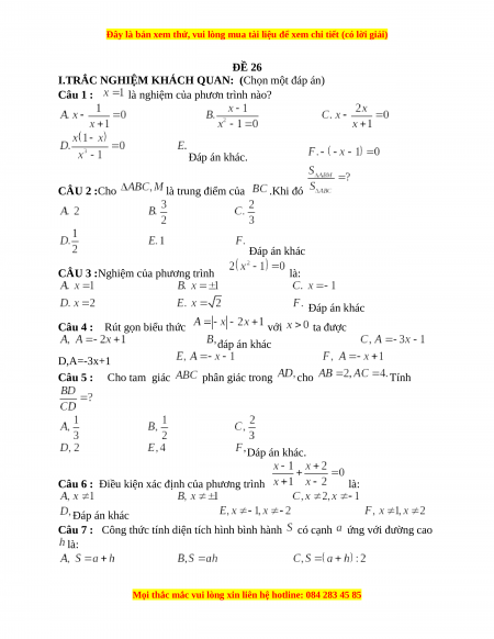 Đây là bản xem thử, vui lòng mua tài liệu để xem chi tiết (có lời giải)
