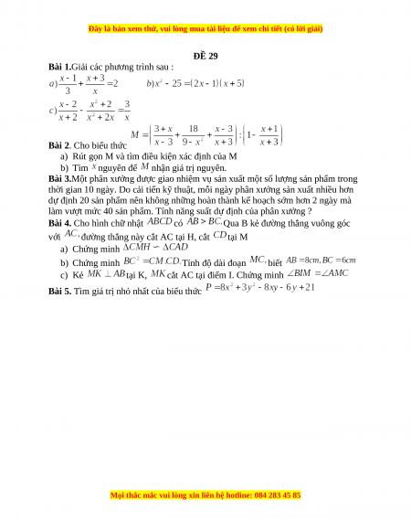 Đây là bản xem thử, vui lòng mua tài liệu để xem chi tiết (có lời giải)