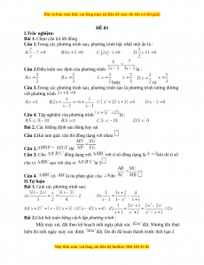 Câu 3.Trong các phương trình sau, phương trình nào là phương trình tương đương với phương trình