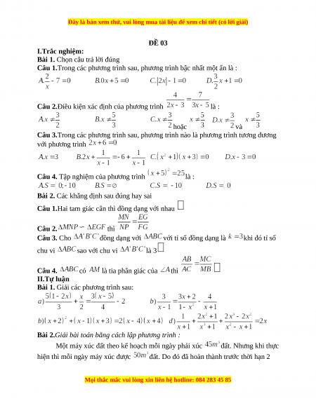 Đây là bản xem thử, vui lòng mua tài liệu để xem chi tiết (có lời giải)