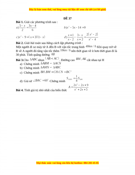 Đây là bản xem thử, vui lòng mua tài liệu để xem chi tiết (có lời giải)