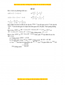 Do đó thời gian về chậm hơn thời gian đi là 30 phút. Tính quãng đường Bài 3.Cho có và có Hãy chứng minh Bài 4. Cho có Trên cạnh lấy điểm B sao cho a) Chứng minh b) Kẻ phân giác trong của Chứng minh c) Gọi