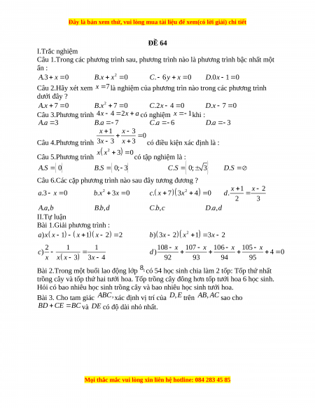 Đây là bản xem thử, vui lòng mua tài liệu để xem(có lời giải) chi tiết