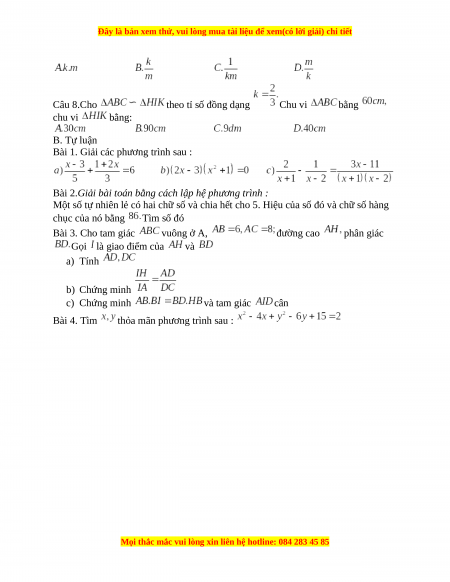 Đây là bản xem thử, vui lòng mua tài liệu để xem(có lời giải) chi tiết