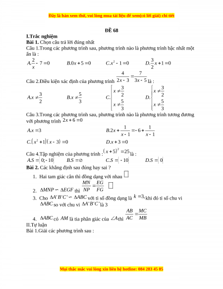 Đây là bản xem thử, vui lòng mua tài liệu để xem(có lời giải) chi tiết
