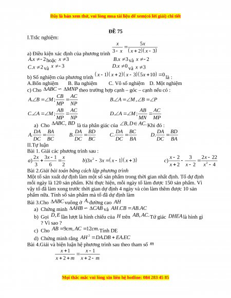 Đây là bản xem thử, vui lòng mua tài liệu để xem(có lời giải) chi tiết