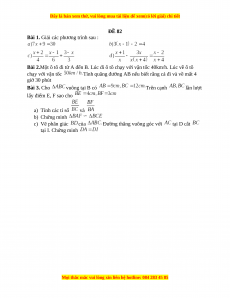 Tính quãng đường AB nếu biết rằng cả đi và về mất 4 giờ 30 phút Bài 3. Cho vuông tại B có Trên cạnh lần lượt lấy điểm E, F sao cho a) Tính các tỉ số và b) Chứng minh c) Vẽ phân giác của