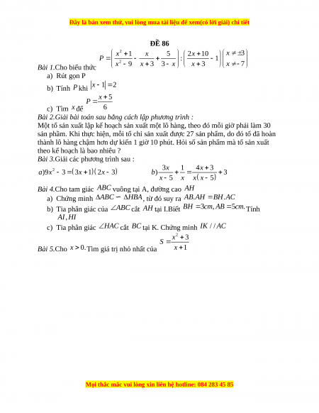 Đây là bản xem thử, vui lòng mua tài liệu để xem(có lời giải) chi tiết
