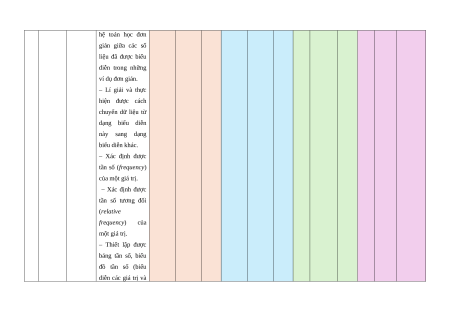 thống kê với (GTTH) 13b, xác suất những kiến thức Câu của các môn học 13c khác trong (GTTH Chương trình lớp / TD) 9 và trong thực tiễn. Hiểu: Câu Câu 15 – Lí giải và thiết 13d (TD/ lập được dữ liệu (TD/ GQVĐ) vào bảng, biểu đồ SD thích hợp ở dạng: CCPT) bảng thống kê; biểu đồ tranh; biểu đồ dạng cột/cột kép (column chart), biểu đồ hình quạt tròn (pie chart); biểu đồ đoạn thẳng (line graph). – Giải thích được ý nghĩa và vai trò của tần số trong thực tiễn. – Giải thích được ý nghĩa và vai trò của tần số tương đối trong thực tiễn. Vận dụng: Bài 1.1 – Phát hiện và lí (GQVĐ/ giải được số liệu MHH) không chính xác dựa trên mối liên