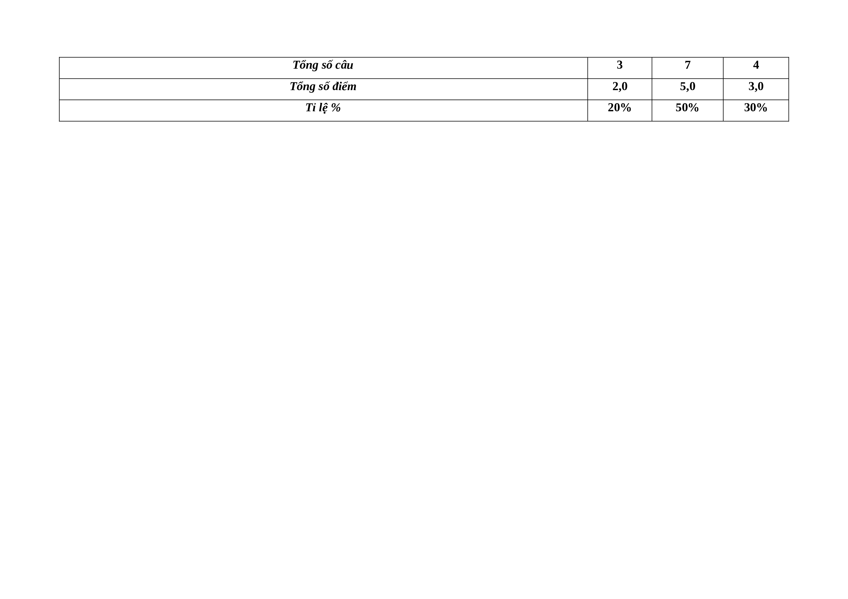 Tổng số điểm 2,0 5,0 3,0 10 Tỉ lệ % 20% 50% 30% 100%