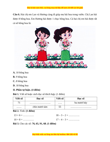 Câu 6. Hai chị em Lan và Hương cùng đi giúp mẹ hái hoa trong vườn. Chị Lan hái