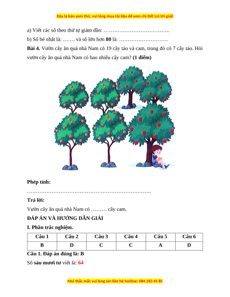 Bài 4. Vườn cây ăn quả nhà Nam có 19 cây táo và cam, trong đó có 7 cây táo. Hỏi