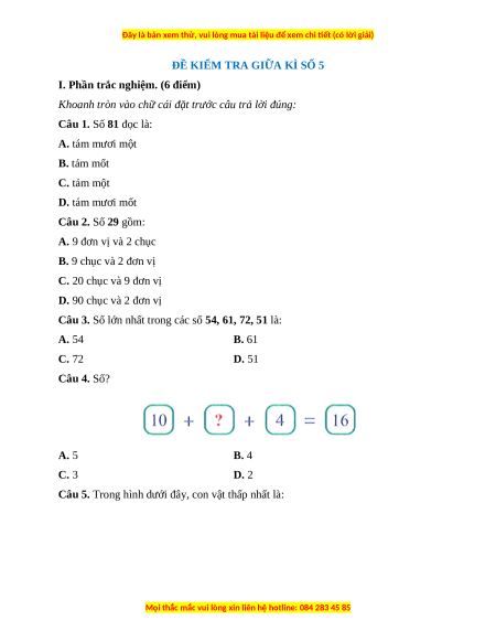 ĐỀ KIỂM TRA GIỮA KÌ SỐ 5