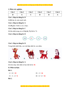 II. Phần tự luận. Bài 1. 11 + 8 = 19 19 – 3 = 16 15 – 5 – 4 = 6 18 – 6 + 4 = 16 Bài 2.
