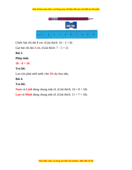 Chiếc bút chì dài 8 cm. (Giải thích: 10 – 2 = 8)
