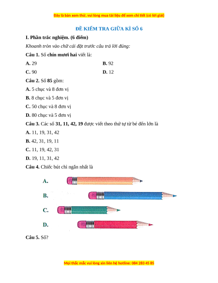 Câu 4. Chiếc bút chì ngắn nhất là Câu 5. Số?