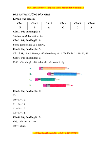ĐÁP ÁN VÀ HƯỚNG DẪN GIẢI