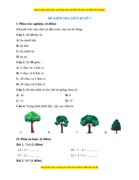 ĐỀ KIỂM TRA GIỮA KÌ SỐ 7