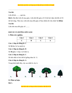 thì hơi rộng. Theo em, Liên nên mua đôi giày cỡ bao nhiêu thì vừa chân? (1 điểm) Trả lời: