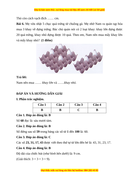 Bài 6. Mẹ vừa nhặt 5 chục quả trứng từ chuồng gà. Mẹ nhờ Nam ra quán tạp hóa