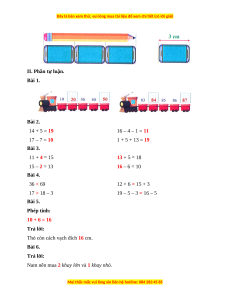 II. Phần tự luận. Bài 1. Bài 2. 14 + 5 = 19 16 – 4 – 1 = 11 17 – 7 = 10 1 + 5 + 13 = 19 Bài 3. 11 + 4 = 15 13 + 5 = 18 15 – 2 = 13 16 – 6 = 10 Bài 4. 36 < 69 12 + 6 = 15 + 3 17 > 18 – 3