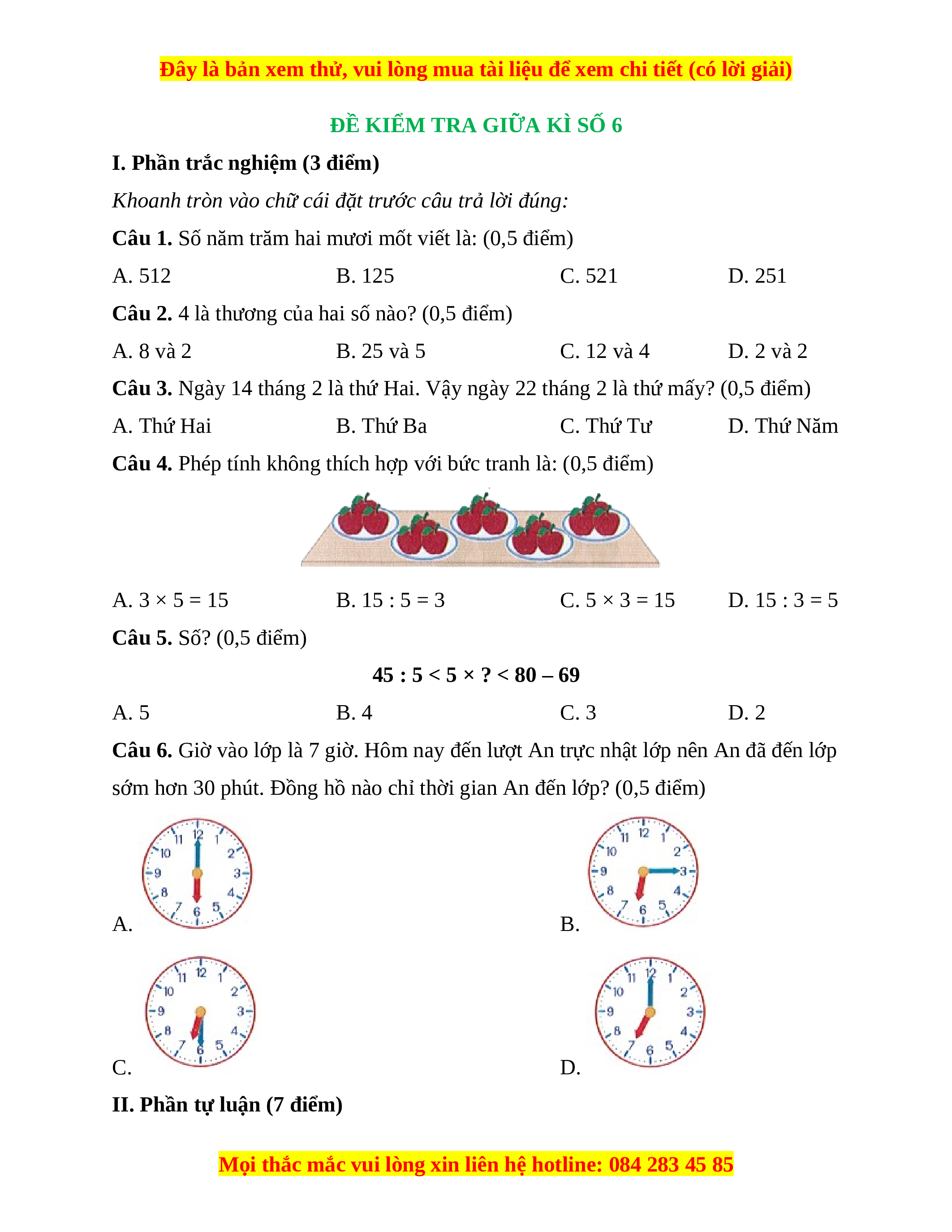 Đây là bản xem thử, vui lòng mua tài liệu để xem chi tiết (có lời giải)