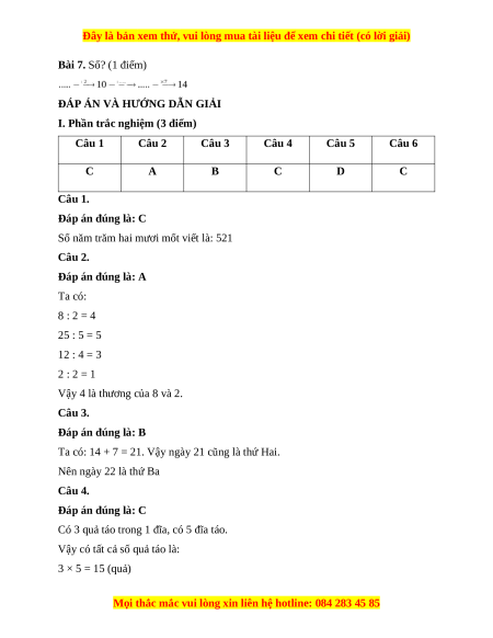 Vậy số cần điền là: 2 Câu 6. Đáp án đúng là: C