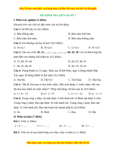 Câu 2. 8 là thương của hai số nào? (0,5 điểm) A. 16 và 2 B. 35 và 5 C. 12 và 2 D. 45 và 5