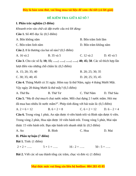 Đây là bản xem thử, vui lòng mua tài liệu để xem chi tiết (có lời giải)