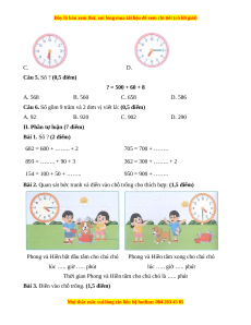 Vậy đồng hồ chỉ thời gian mẹ nấu xong là Câu 5. Đáp án đúng là: A 500 + 60 + 8 = 560 + 8 = 568