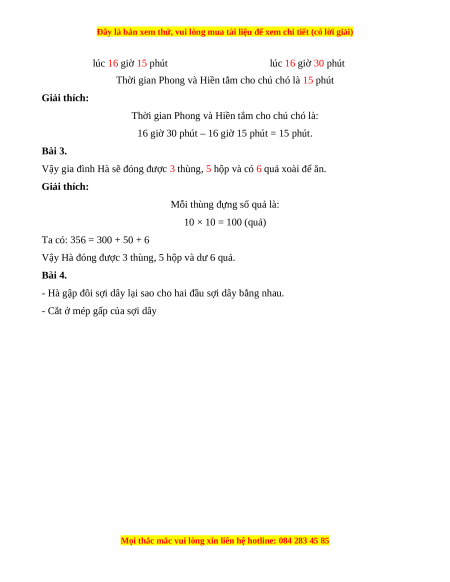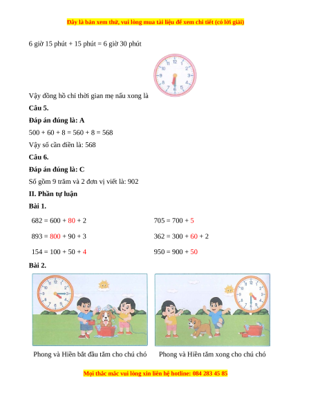 Phong và Hiền tắm xong cho chú chó lúc ….. giờ ….. phút lúc ….. giờ ….. phút