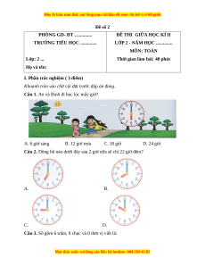 Câu 1. An và Bình đi học lúc mấy giờ? A. 6 giờ sáng B. 12 giờ trưa C. 18 giờ D. 24 giờ