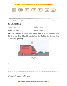 Bài 4. Tính (2 điểm) 18 m + 42 m = …… 52 dm – 36 dm = …… 65 km + 28 km = …… 82 cm – 47 cm = ……