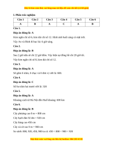 Khoảng cách từ Hà Nội đến Huế khoảng: 600 km Câu 6. Đáp án đúng là: B
