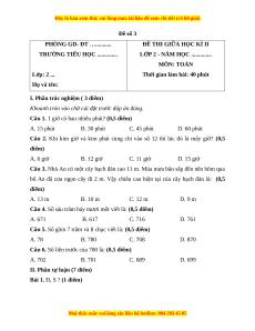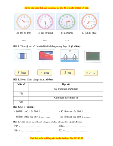 Câu 1. 1 giờ có bao nhiêu phút? (0,5 điểm) A. 15 phút B. 30 phút C. 45 phút D. 60 phút