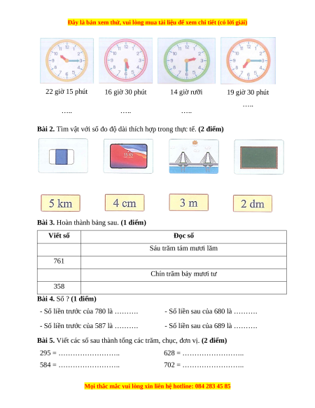 Bài 5. Viết các số sau thành tổng các trăm, chục, đơn vị. (2 điểm)
